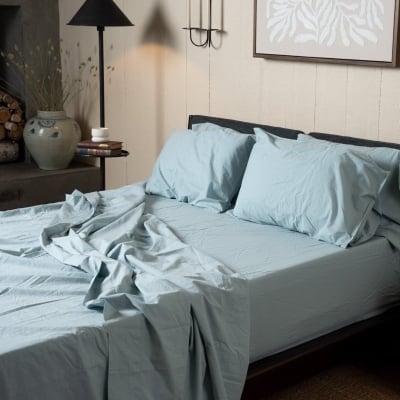 Crinkle Percale Organic Cotton Sheet Set + Pillowcases